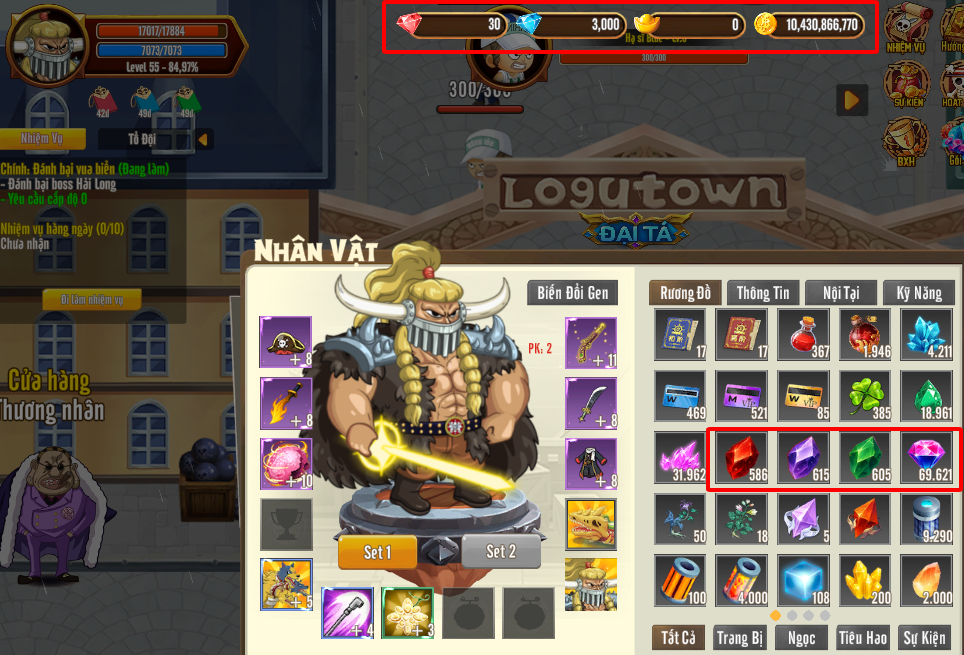 Nổi bật: Acc LV5x Top 50 tb3 chưa mở quà, còn 6 túi thượng thạng, 3k kc, 10 tỷ beli, 50k đá quý, túi kaido, rương tạo tác, rương cổ đại... all tt như hình