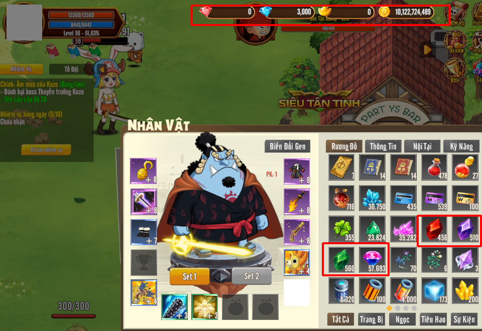 Nổi bật: Acc LV5x Top 50 tb3 chưa mở quà, còn 6 túi thượng thạng, 3k kc, 10 tỷ beli, 50k đá quý, túi kaido, rương tạo tác, rương cổ đại... all tt như hình